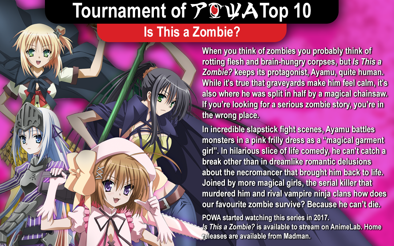 From February 24th to May 5th 2019, the POWA anime club celebrated 10 years of screenings with the Tournament of POWA. A series of polls were held to ask members old and new which of the 100+ shows we’ve watched captured their hearts and minds more than any other.